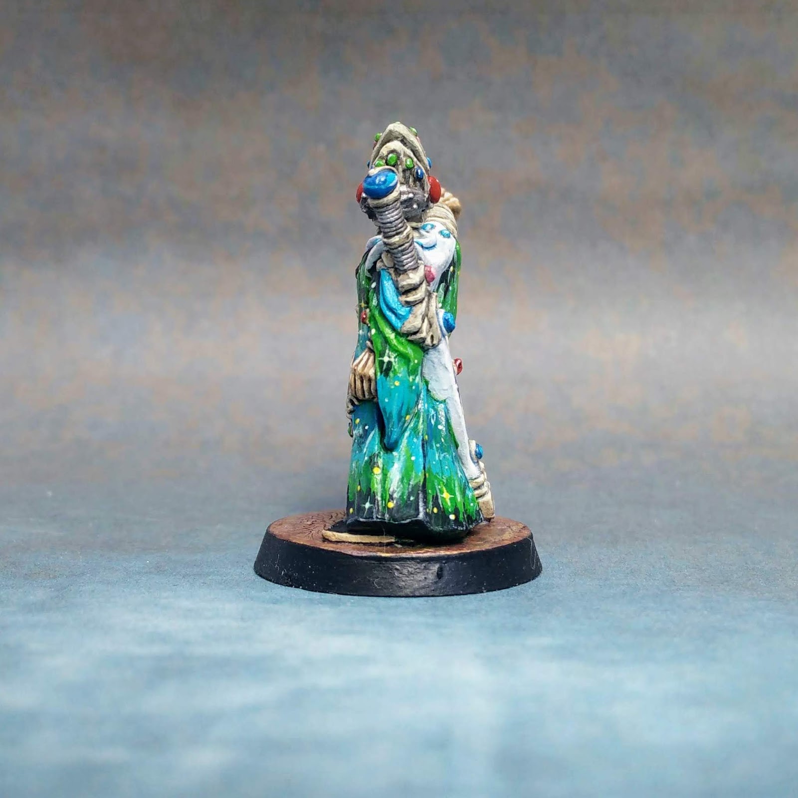 After this is, the team I painted for a friend are Space Frogs or as GW calls them, Slann. Now this seemed like a great idea at first, but these are resin. Some of the most awful resin I've ever experienced. These where won at a auction, but apparently not the first time, I think four other people gave up with the idea of painting them. While I persisted, it was a arse. The resin wouldn't hold the paint, even after cleaning and soaking, so I had to be extra careful until they where varnished. Assembly was a bit troublesome too, lots of parts had to be re-worked to get them to fit. The heads being the most difficult. But they got finished in all their multi-coloured glory. Unfortunately I don't think my camera did the colours justice.